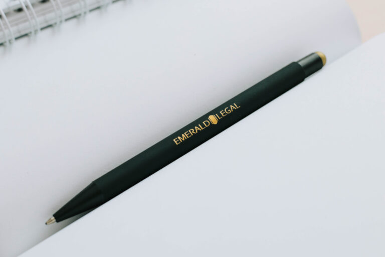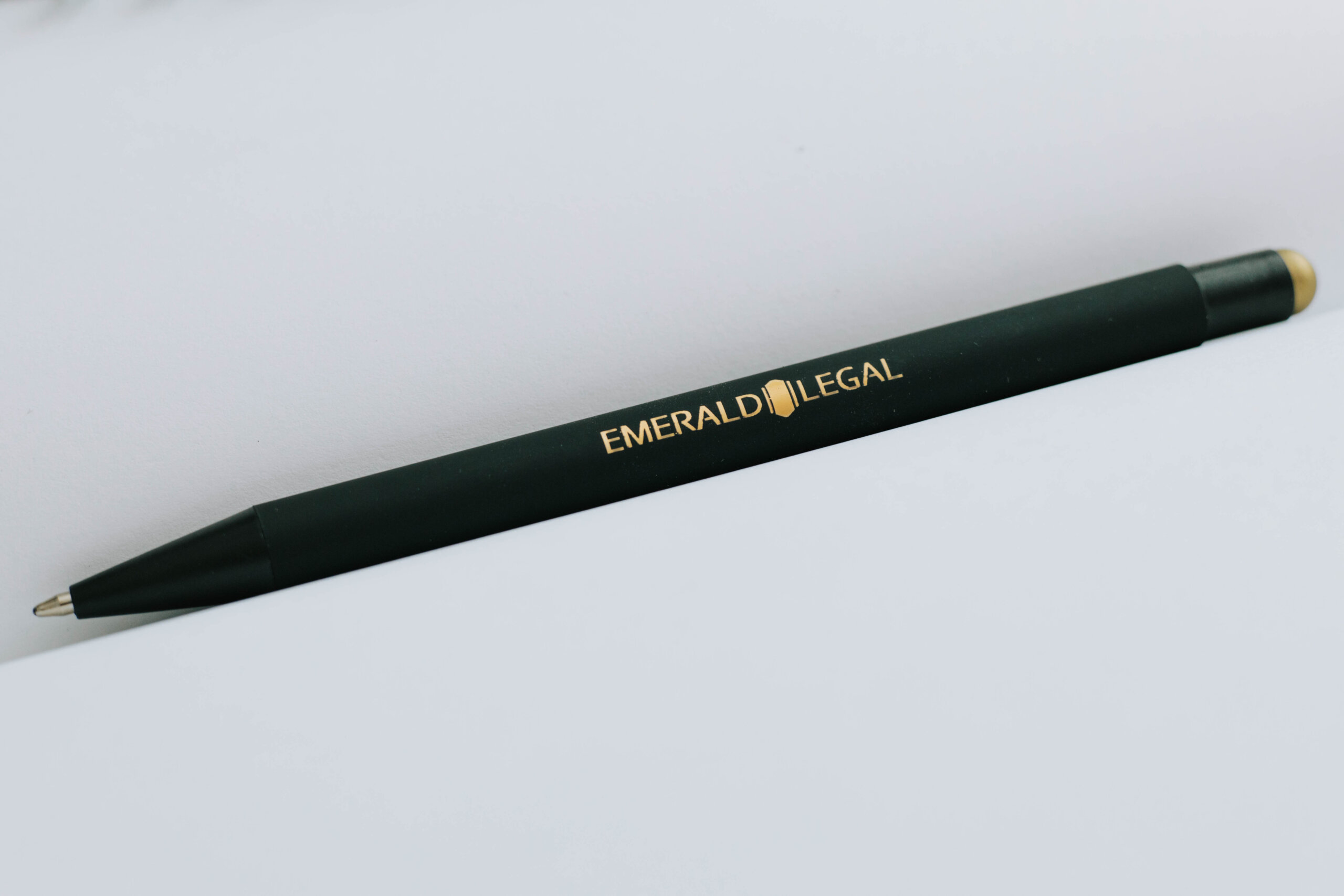We found an aluminum pen for them, which was comfortable, elegant and had a golden touch tip, the tone of which was very close to the Emerald logo. As a positive surprise, we discovered that when we engraved the black surface of the pen, we got a similar golden color as the gold part of the pen.