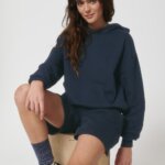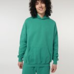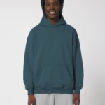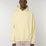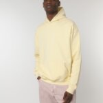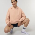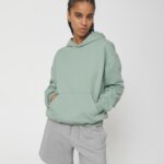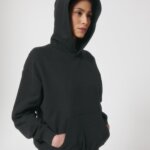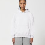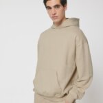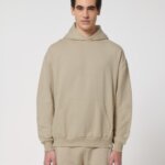 Hoodie with a loose cut, no hood cords. Suitable for both men and women.
